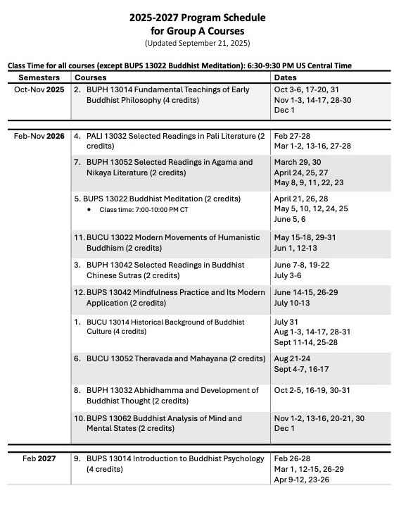 Classes meet every other week on Friday, Saturday, Sunday, and Monday evenings .